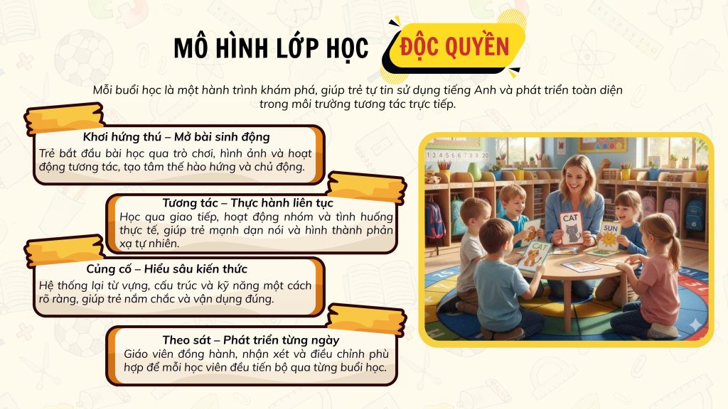 Chúng tôi không chỉ giảng dạy ngôn ngữ mà còn xây dựng một môi trường học tập sáng tạo, giúp các em phát triển toàn diện, mở ra cánh cửa tri thức và cơ hội phát triển tương lai.